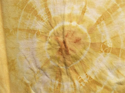 Below is the brightest of yellows. The pattern again created using shibori techniques. Basically I took an old white t-shirt and a huge pot of onion skins, and boiled it all up for an hour, then left it overnight to steep. The more onion skins, the more intense the colour.